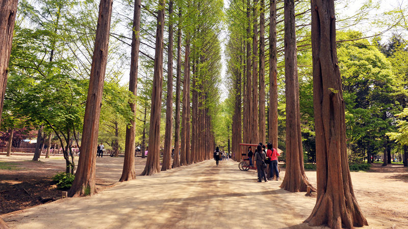 숲을 이루는 나무 아래에서 삼림욕을 즐기려는 관광객의 발길이 끊이지 않는다.